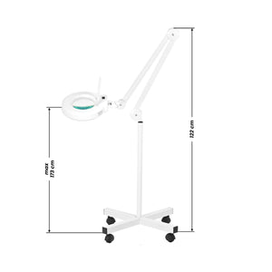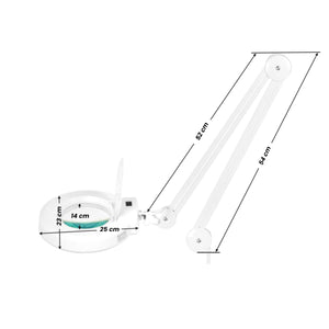 5 diopter magnifier lamp, LED lamp on a four-arm stand. allows you to view the skin enlarged with good lighting. also used in manicure and pedicure treatments, permanent make-up, epilation. it has high visibility, anti-reflective glass and a fluorescent lamp that shines bright white light without causing eye pain when working for a long time. ideally suited for cosmetic, dental and veterinary offices and is used in other industries.