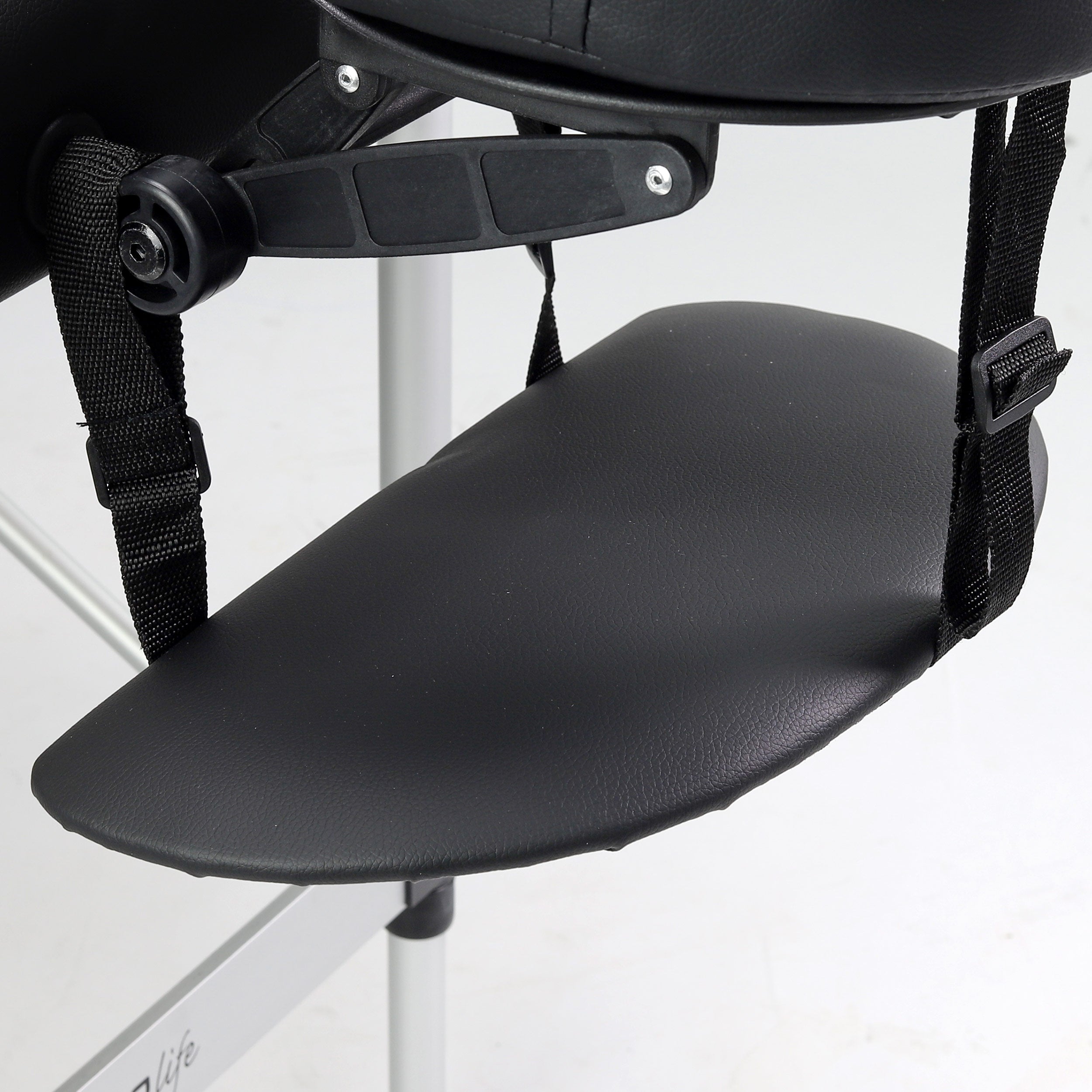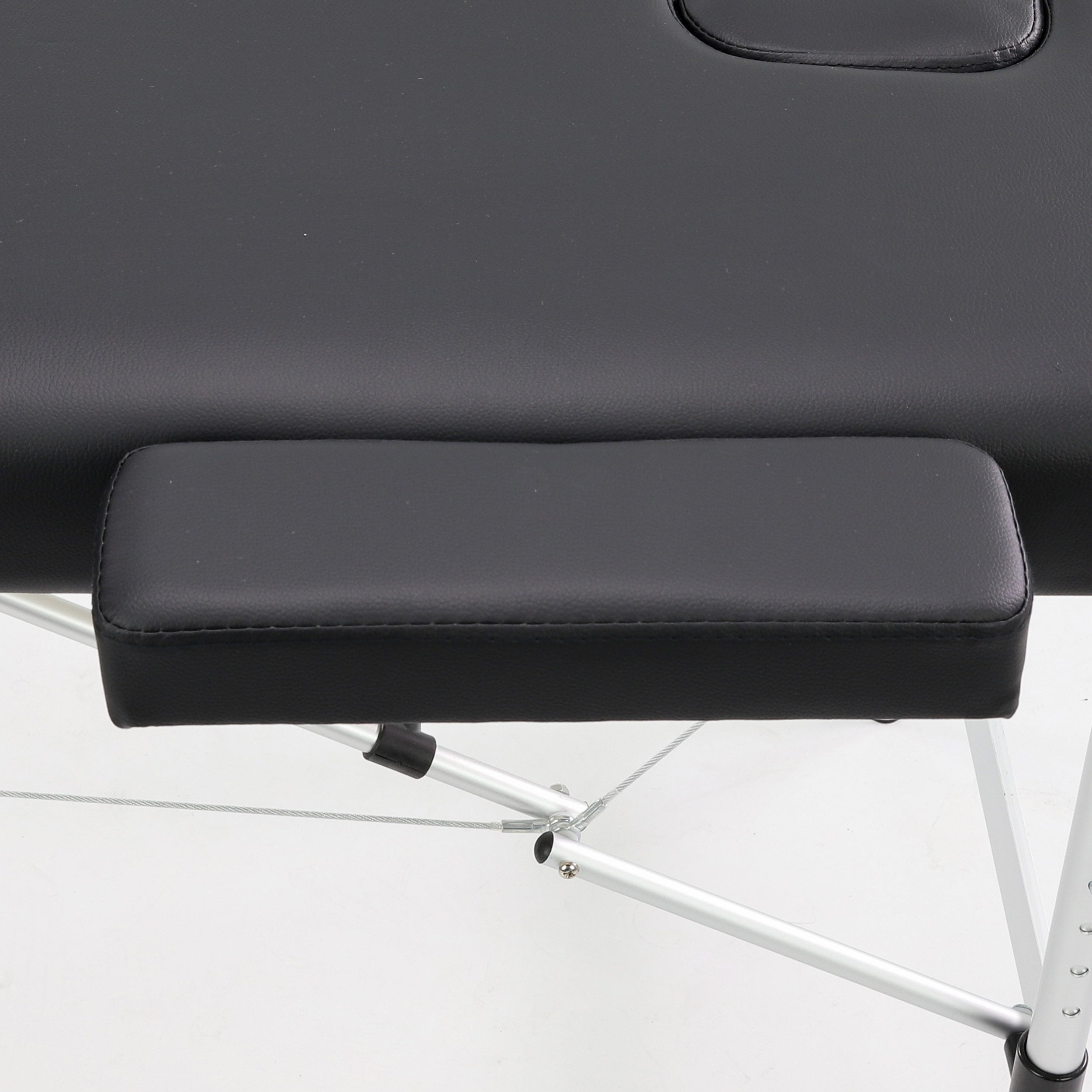 The table has a lightweight aluminum construction with an additional crossbar increasing stability during work. This makes it ideal for stationary use in massage and physiotherapy clinics, as well as for fieldwork.