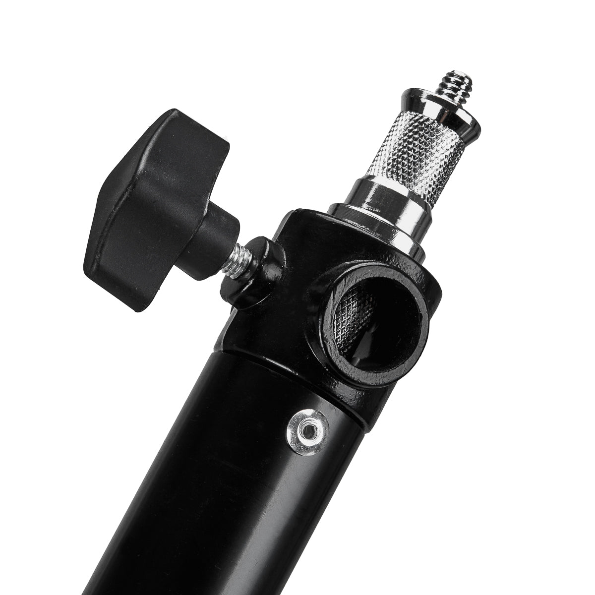 The telescopic design gives ability to adjust the arm length from 73 to 131 cm. Adjusting the angle of the tripod provides significant freedom of movement vertically and horizontally, allowing you to direct the lighting in the selected direction precisely. The double-sided pin can be mounted in one of three holes, which allows to select the appropriate lighting setting to suit your needs.