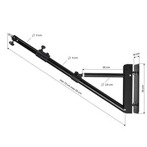 The adjustable length, steel wall holder is designed for lamps and light rings with threads with diameters of 6 mm and 9 mm. A solid hanger allows to carefully plan the lighting and mount it stably above the workstation.